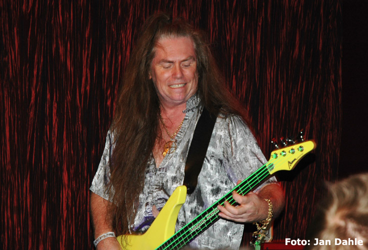 Tidligere HammerFall-bassist Magnus Rosén står på motsatt side, og rocker i velkjent stil, med det alltid påklistra gliset. Bakerst på scena sitter Darby Todd og slår trommer, mens tangentist Samuel Olsson står inne i kroken.