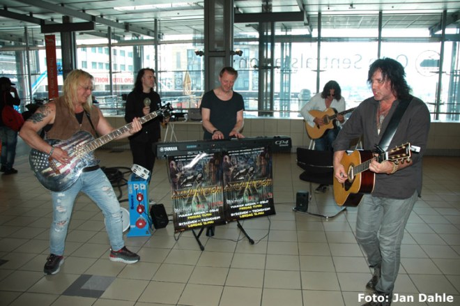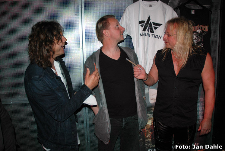 Etter hvert som resten av bandet innfinner seg, og vi finner veien til «backstage» – som er et hett rom med særdeles dårlig luft – forteller Åge at Erik Mårtensson har måttet melde avbud grunnet sykdom. Dermed er det i dag et helnorsk Ammunition som først skal spille litt akustisk på Oslo S.
