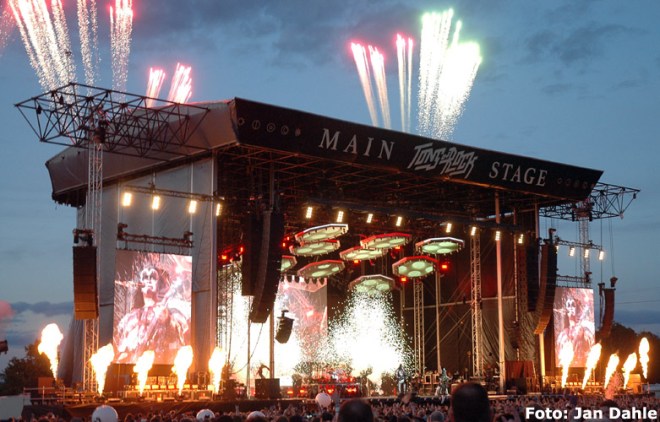 Det bærer rett tilbake til 1976 når Kiss åpner showet med «Detroit Rock City» og «Shout It Out Loud», der bandet først heises ned fra lysriggen, og bomber og flammer er en del av det visuelle. Disse elementene får naturlig nok altså mindre effekt når det er lyst ute, mens laserne senere i konserten like gjerne kunne stått igjen på trailerne, for de er så godt som helt usynlige.